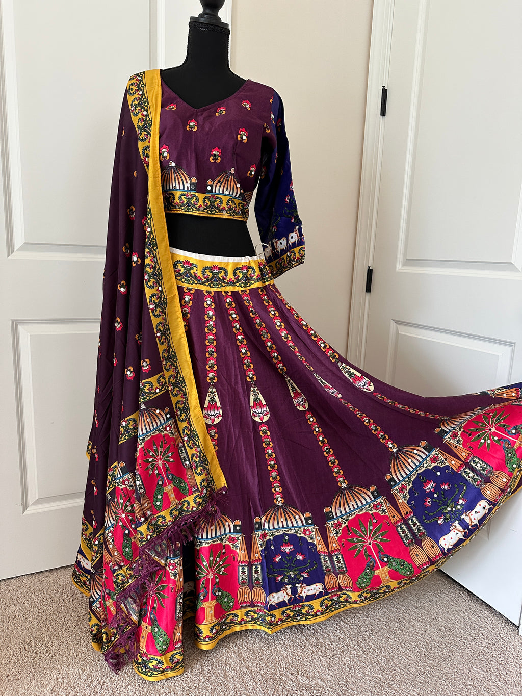 Digital Print Mirrorwork Satin Silk Skirt Set 2