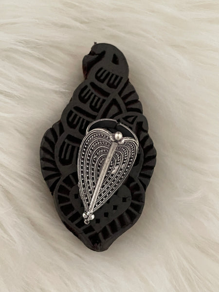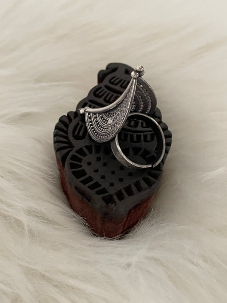 Beautiful handcrafted finger ring is designed with antique silver finish is a pretty accessory to enjoy wearing with traditional Indian as well as western outfits!