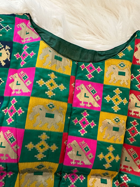 Designer & one of a kind beautiful brocade Silk blouse in multicolor is inspired by Patola weave, absolutely elegant for mix & match with many a sarees with endless combinations!
