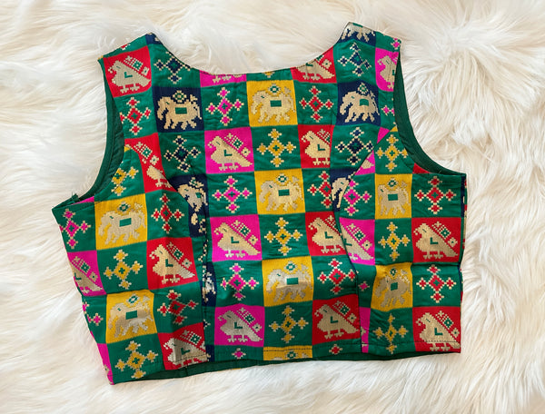 Brocade Silk Patola Sleeveless Blouse - Multicolor