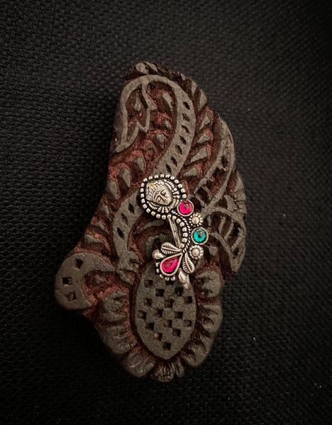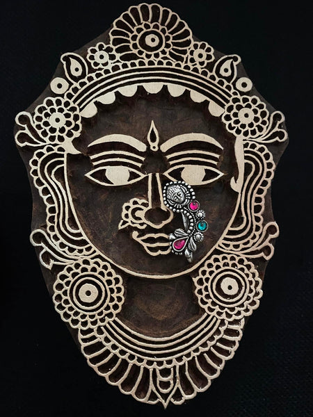 Beautiful Nath/nose pin is beautifully handcrafted in antique silver polish! This is a easy wear press nath & works best for both pierced & non-pierced noses. Add another layer of style to your beautiful Desi wardrobe with this nath for all festivities & celebrations!