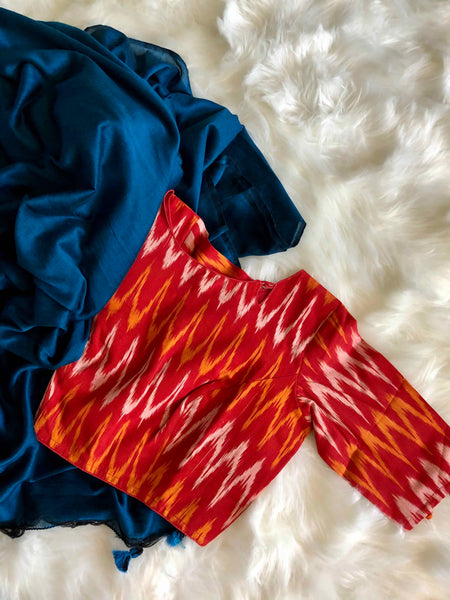 Beautiful handloom Ikkat blouse pretty to match up with many sarees as a contrast.