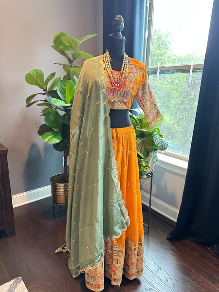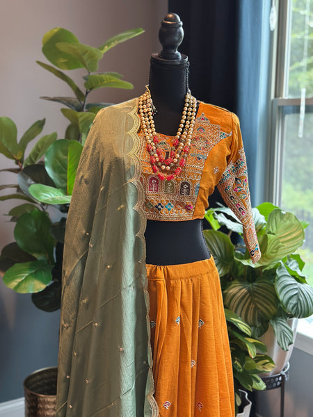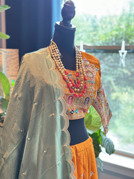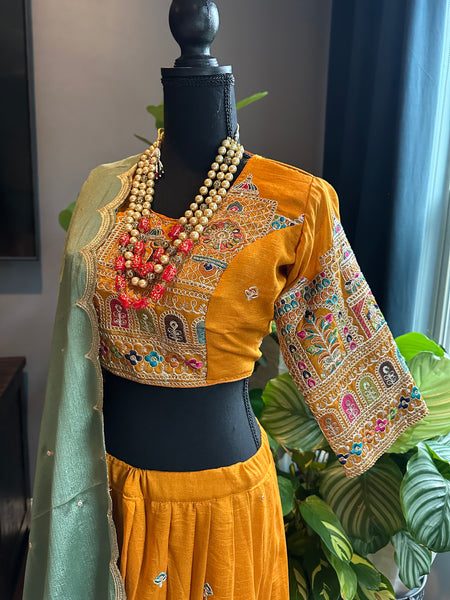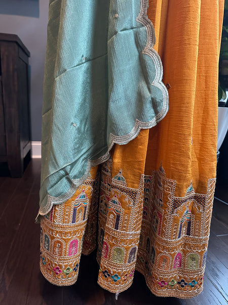 Hold your breath for these beauties are absolutely breathtaking!! Soft fabric in beautiful tones dazzling with intricate embroidery inspired from historic architecture of Jharokha motif - these stunning Designer silk skirt comes with a vibrant print, in vibrant colours & pattern! Soft silk with lining inside , and a draw string waist that makes it an easy fit all, these take the festive look up a notch with comfort in mind!