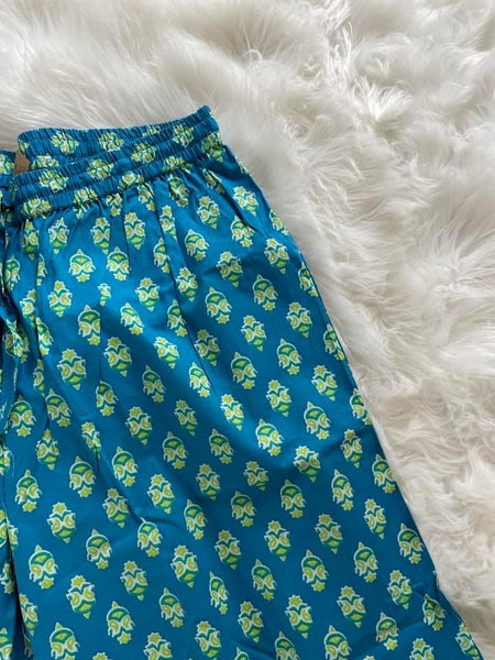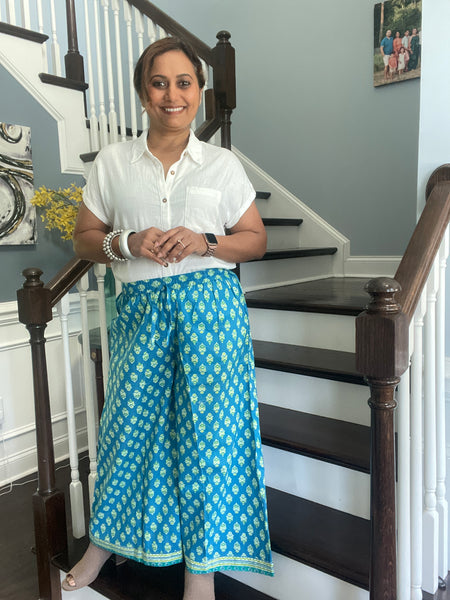 Fun & oh so vibrant, these beautifully tailored palazzos are simply perfect to enjoy in many seasons & occasions! Flaunt them in a Desi fusion style, or wear it in traditional style, these sure are fun! Soft printed cotton makes this very comfortable for the sultry summer to layering up for Fall season!