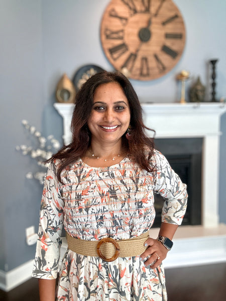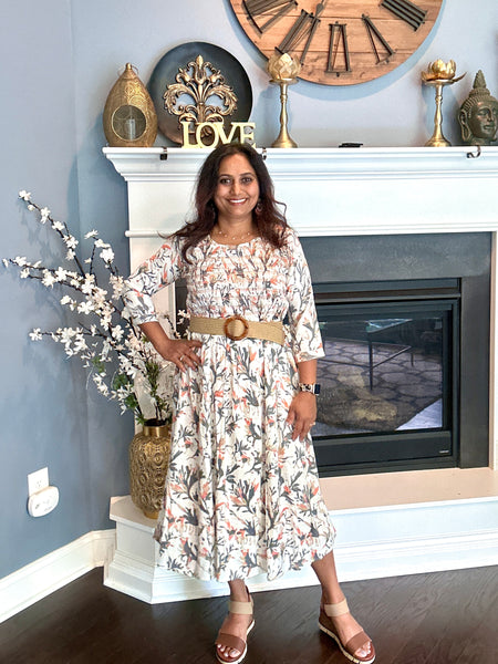 Beautiful simple cotton dress for everyday casual chic look with comfort as high priority! even better, it has pockets!! A pretty hand braided contrast belt to synch the waist and this is a fu fun dress for many a occasions! Flaunt as a Spring Summer dress or even wear fusion style with palazzo for a festive look!!