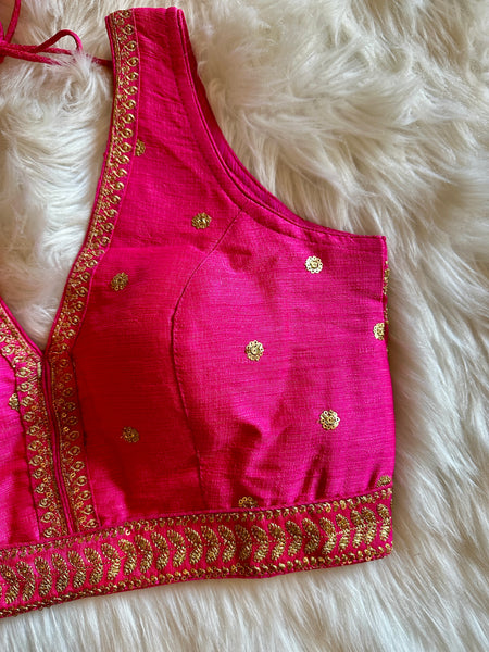 Looking for an exclusive party or festive season blouse with ornate design? Well, look no further! This gorgeous Designer brocade blouse inspired by Sabyasachi classy V neck cuts and styling is not only lovely for a day time wear but absolutely gorgeous for an eveningt too! Prefect for mix & match, this truly is a simple yet elegant blouse!