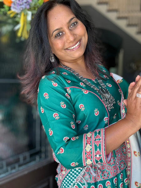 Hold your breath for these beauties are absolutely breathtaking!! Shimmering with mirrors, this stunning Designer Digital Print silk skirt set comes with a vibrant print, in the most vibrant colours & pattern! Soft silk with lining inside , and a draw string waist that makes it an easy fit all, these take the festive look up a notch with comfort in mind!