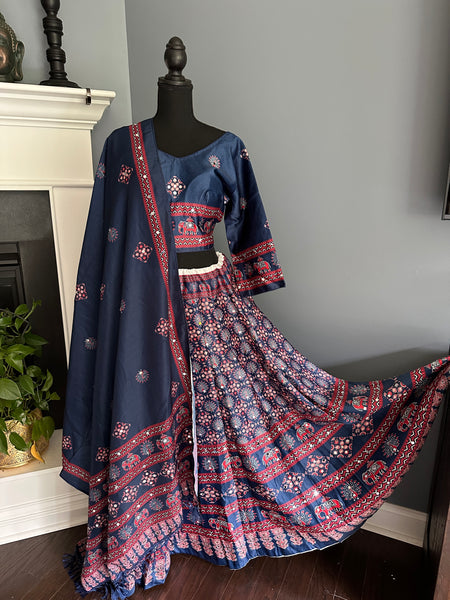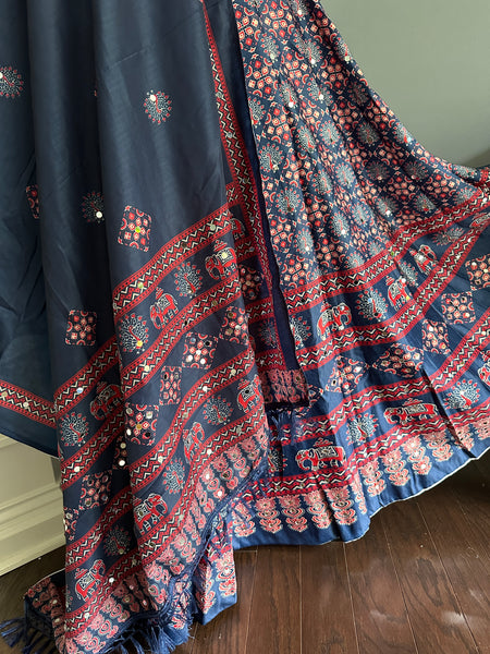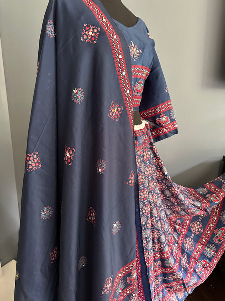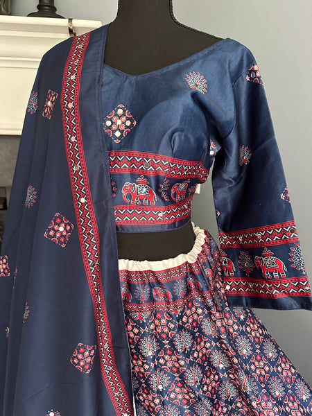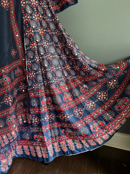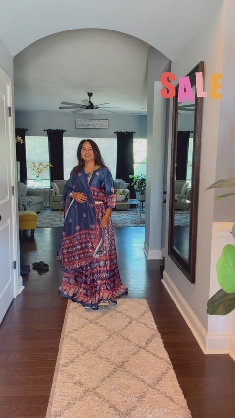 Hold your breath for these beauties are absolutely breathtaking!! Shimmering with mirrors, this stunning Designer Digital Print silk skirt set comes with a vibrant print, in the most vibrant & pattern! Soft silk with lining inside , and a draw string waist that makes it an easy fit all, these take the festive look up a notch with comfort in mind!