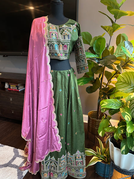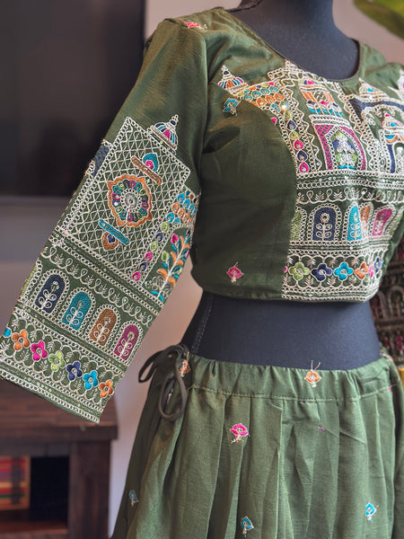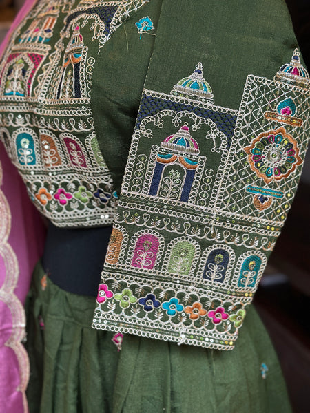 Hold your breath for these beauties are absolutely breathtaking!! Soft fabric in beautiful tones dazzling with intricate embroidery inspired from historic architecture of Jharokha motif - these stunning Designer silk skirt comes with a vibrant print, in vibrant colours & pattern! Soft silk with lining inside , and a draw string waist that makes it an easy fit all, these take the festive look up a notch with comfort in mind!