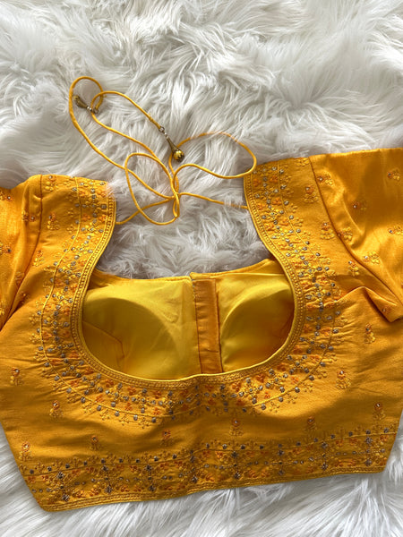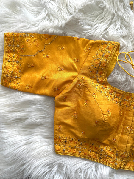 Looking for an exclusive party or festive season blouse with ornate design? Well, look no further! This gorgeous Designer brocade blouse inspired by Sabyasachi classy V neck cuts and styling is not only lovely for a day time wear but absolutely gorgeous for an eveningt too! Prefect for mix & match, this truly is a simple yet elegant blouse!