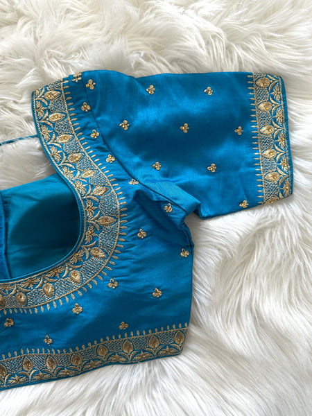 Looking for an exclusive party or festive season blouse with ornate design? Well, look no further! This gorgeous Designer brocade blouse inspired by Sabyasachi classy neck cuts and styling is not only lovely for a day time wear but absolutely gorgeous for an eveningt too! Prefect for mix & match, this truly is a simple yet elegant blouse!