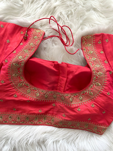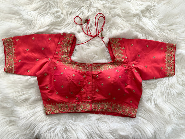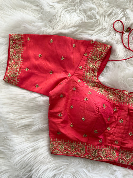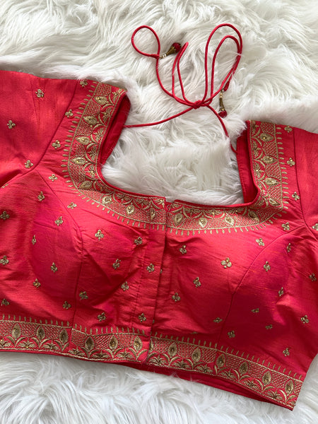 Looking for an exclusive party or festive season blouse with ornate design? Well, look no further! This gorgeous Designer brocade blouse inspired by Sabyasachi neck cuts and styling is not only lovely for a day time wear but absolutely gorgeous for an eveningt too! Prefect for mix & match, this truly is a simple yet elegant blouse!