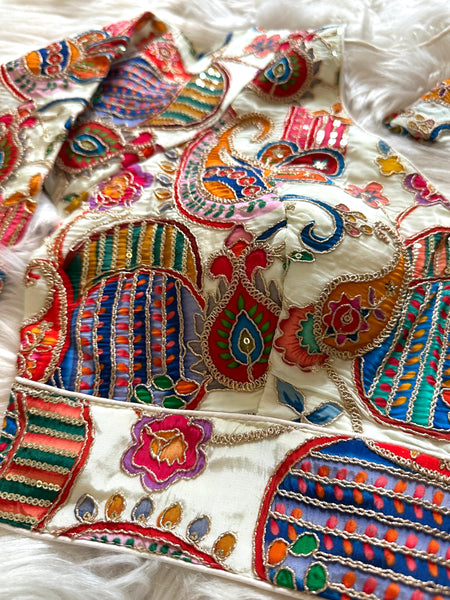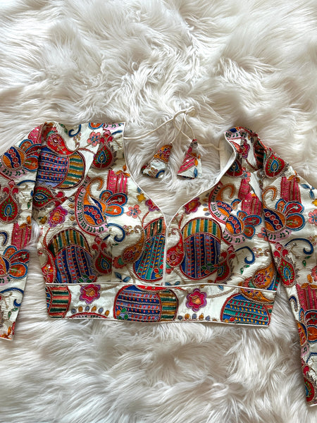 Check out our latest addition to the collection, the Designer full sleeves embroidered blouse in beautiful bright colors & sequins! With lots of colors & textures from the embroidery these make for a fun mix and match blouse for many a sarees & skirts on your wardrobe this season!!