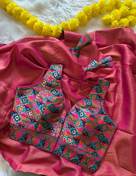 Pair our ready-made blouses + Mul tissue sarees for an effortless festive glow β¨. Add jewelry for the perfect Indian wedding look!!