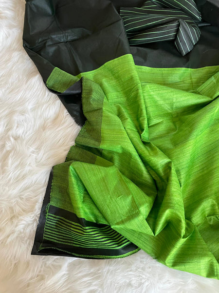 This saree is a timeless classic, a Tussor silk with plain body and a beautiful contrast Geecha pallu makes this a keeper! Endless mix & match options to pair it up with and give it your own style!