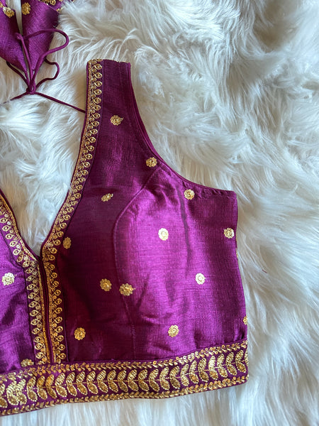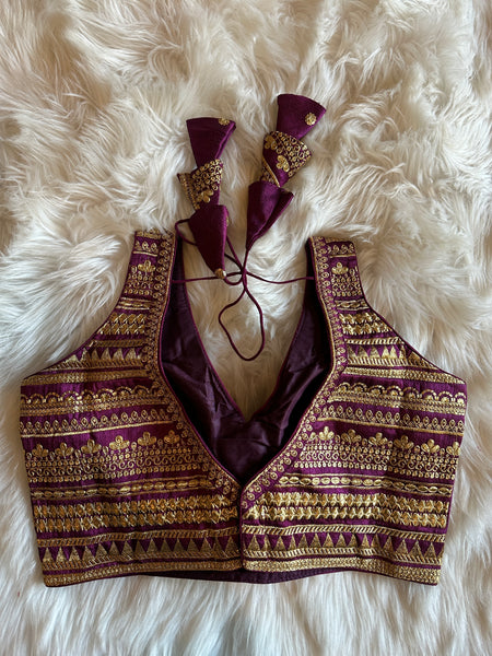 Looking for an exclusive party or festive season blouse with ornate design? Well, look no further! This gorgeous Designer brocade blouse inspired by Sabyasachi classy V neck cuts and styling is not only lovely for a day time wear but absolutely gorgeous for an eveningt too! Prefect for mix & match, this truly is a simple yet elegant blouse!