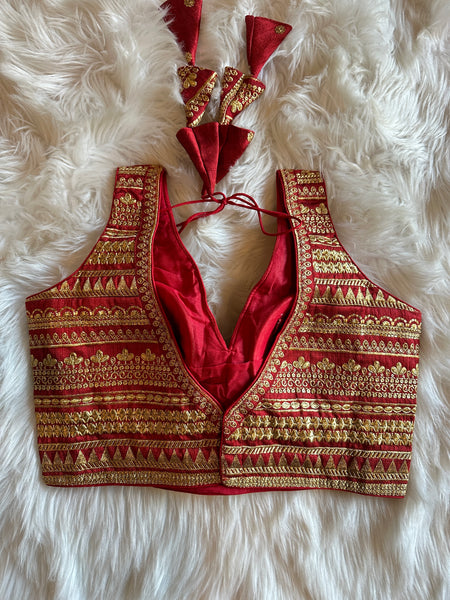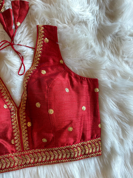 Looking for an exclusive party or festive season blouse with ornate design? Well, look no further! This gorgeous Designer brocade blouse inspired by Sabyasachi classy V neck cuts and styling is not only lovely for a day time wear but absolutely gorgeous for an eveningt too! Prefect for mix & match, this truly is a simple yet elegant blouse!