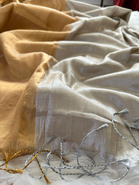 Silk Tissue Saree - Gold & Silver - Sona Chaandi Saree